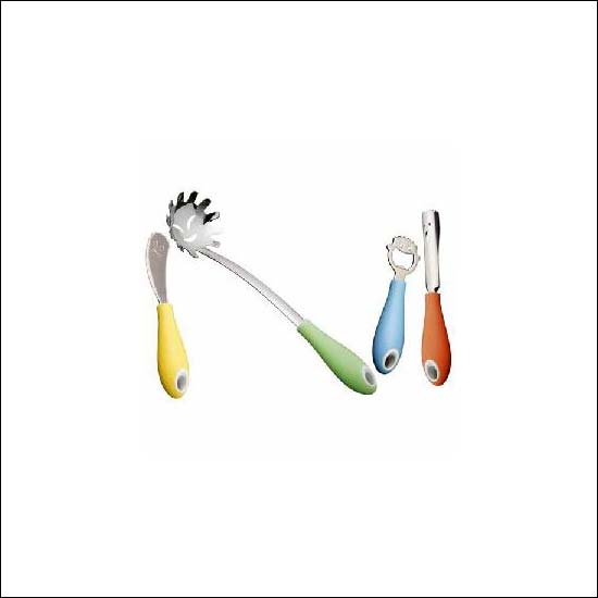 • Includes can opener,peeler, corer and slotted spaghetti holder.