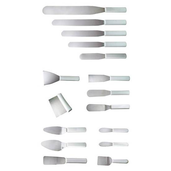 This is a collection of kitchen utensils. The collection are mainly for assisting cake making. The utensils are made by stainless steel.
