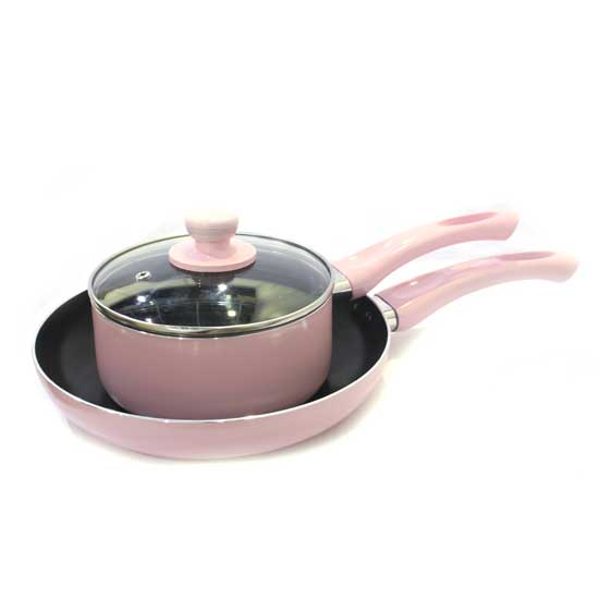 This kitchenware set includes a saucepot, a saucepan, a fry pan and so on. The cooking utensils boast a captivating pink exterior with a polished finish for an exquisite accent. This kitchenware set makes a perfect integration of style and function.