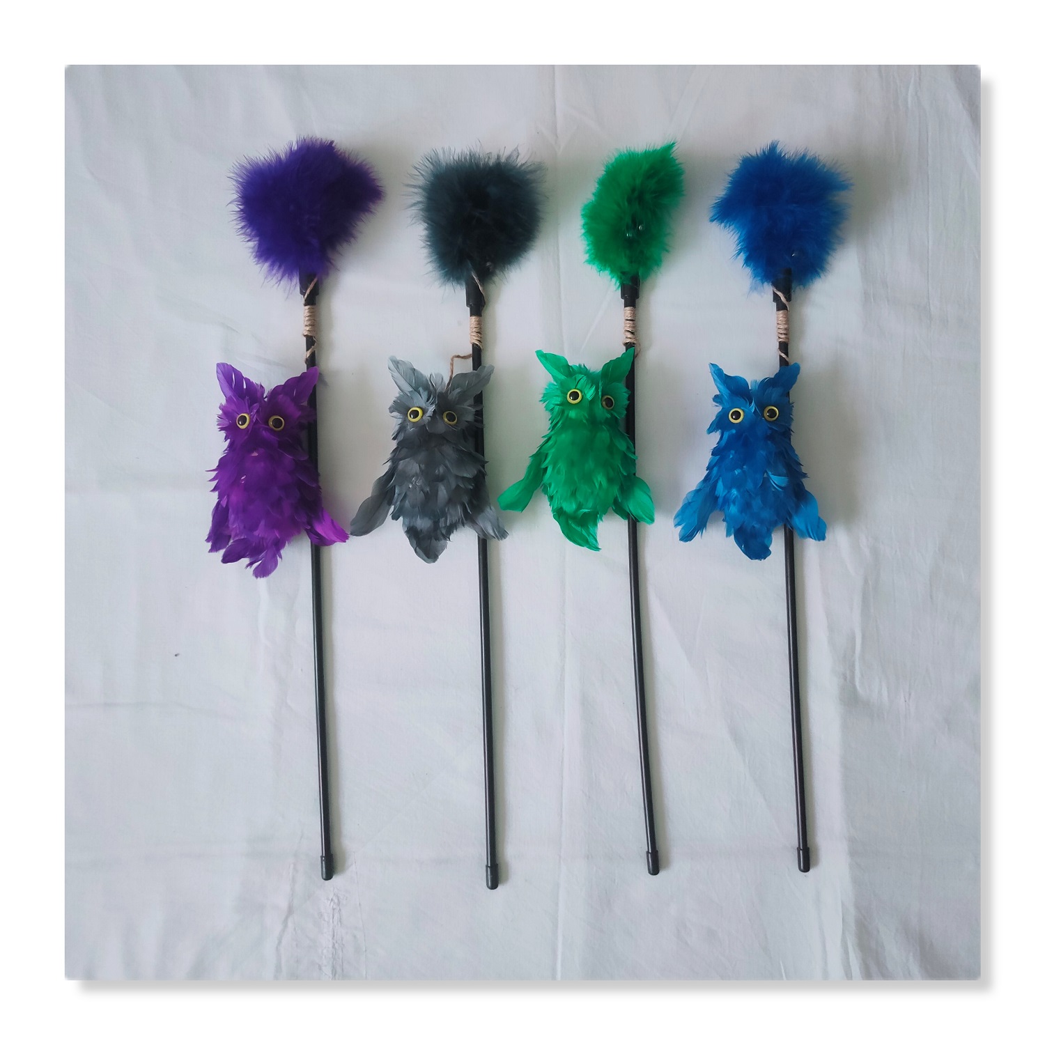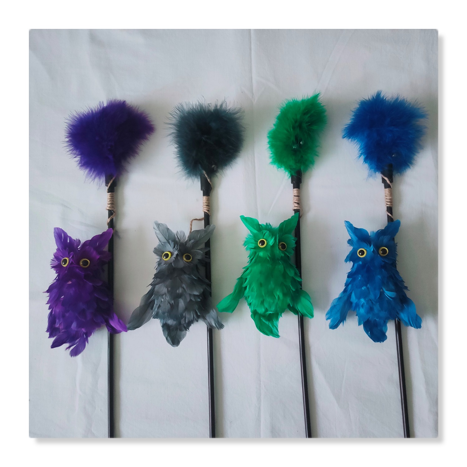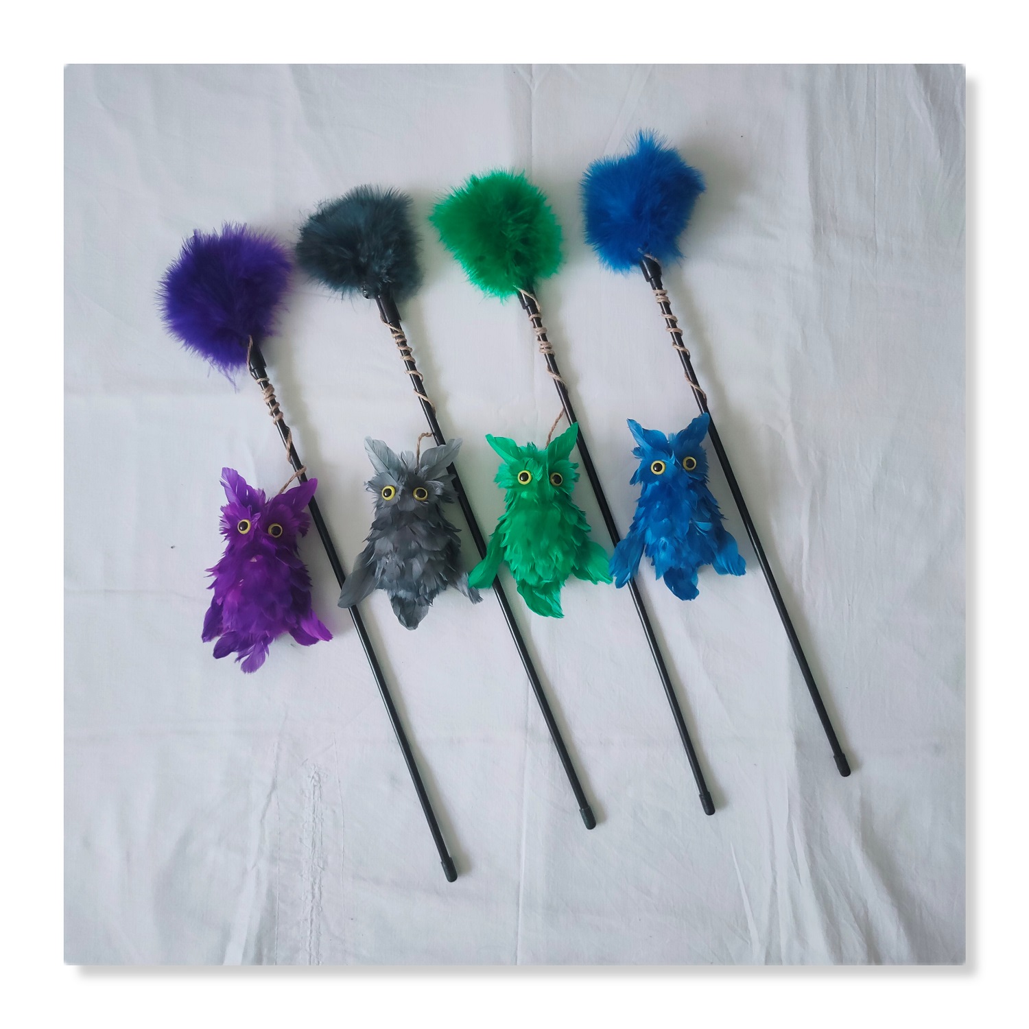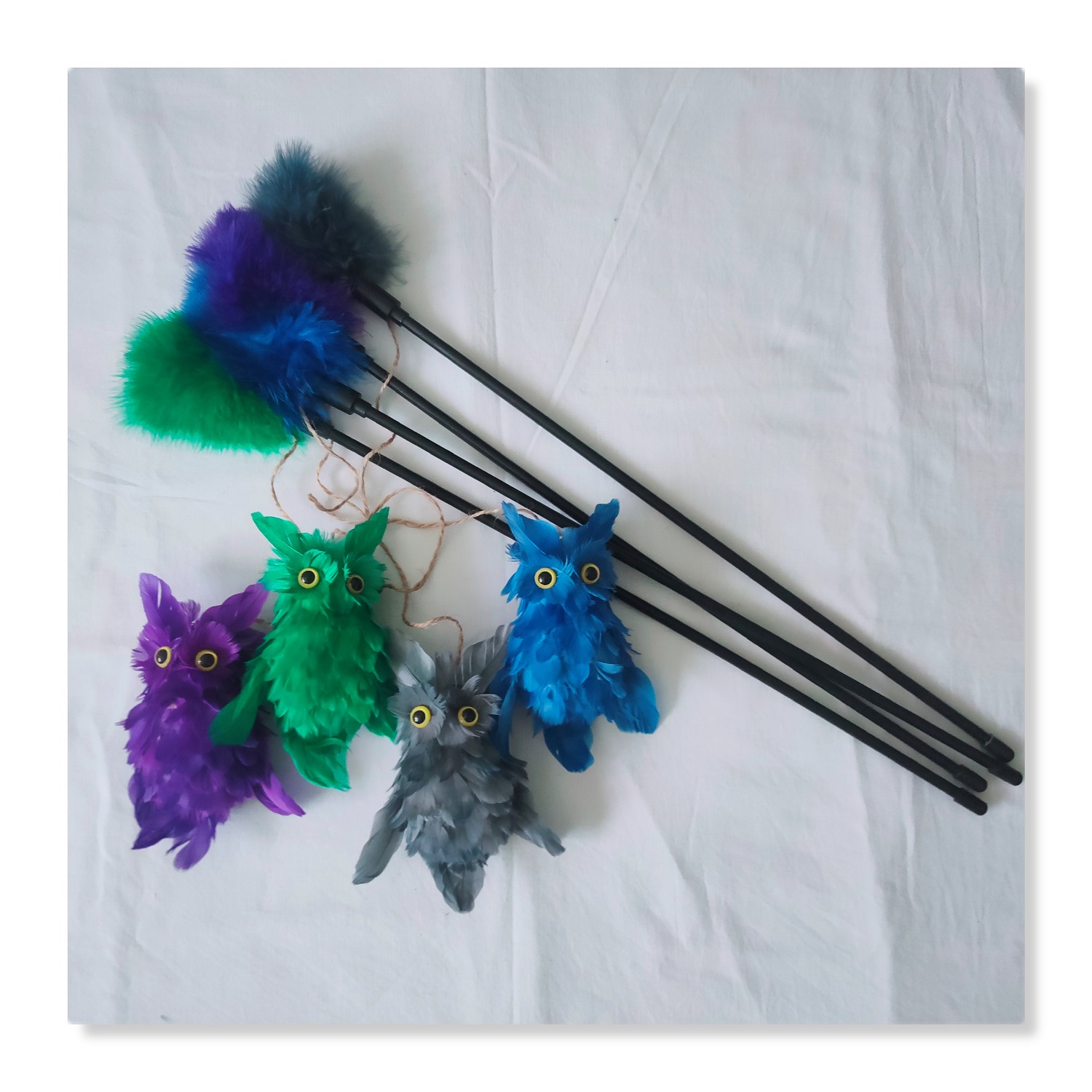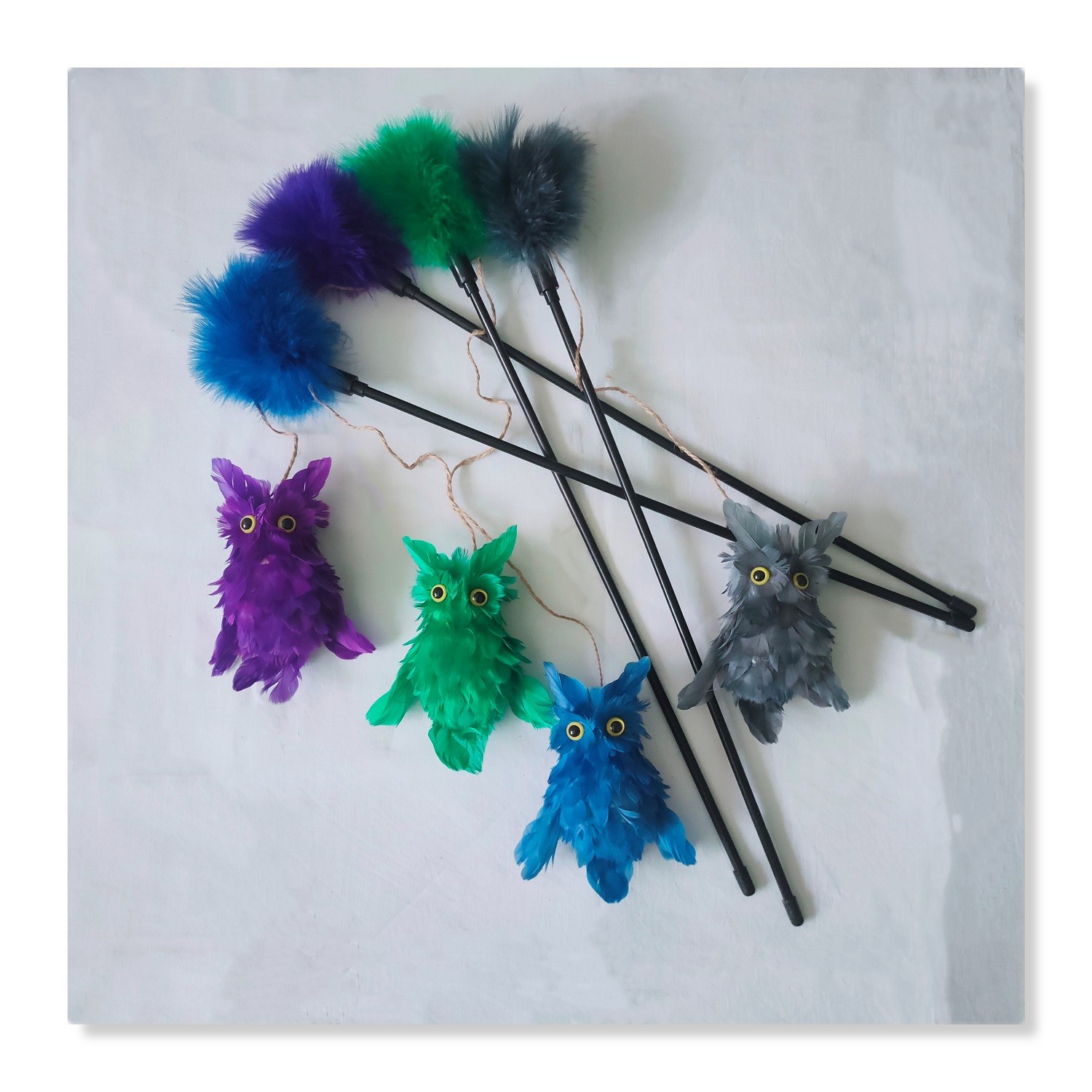 Kitten Cat Teaser Toys Interactive Wand with Feather Owl Shape Toy