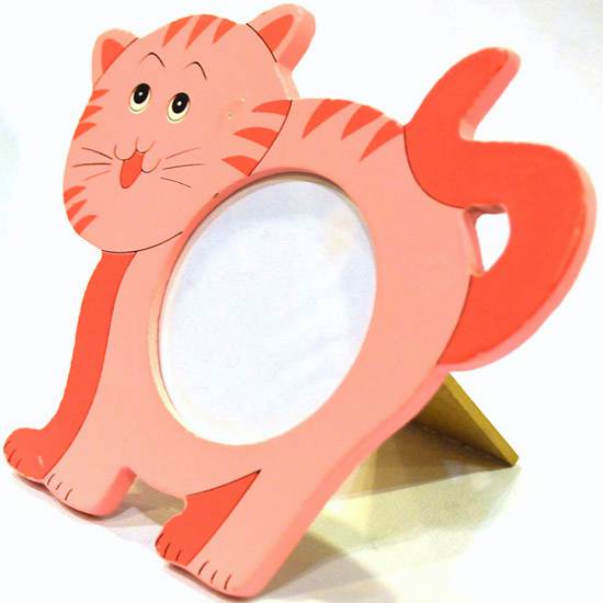 This photo frame is an excellent decoration to your house. It features a lovely smiling cat with patterns and a curling tail. The frame is special as it is circular. It is most suitable for holding closed-up pictures.
