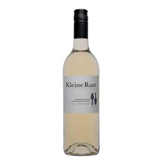 Displayed is a bottle of white wine that originates from South Africa. Made from a blend of Chenin Blanc and Sauvignon Blanc, this white wine has a clear vibrant color and fruity nose. This high quality table wine is ideal to go with chicken and cheeses.