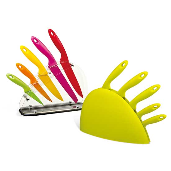 The knife set comes with different functions of knives for chef, bread, slicing, utility and paring. The POM handle is especially designed for comfortable hand touch feel. The rubberwood or plastic knife block can keep the knives in clean and tidy state.