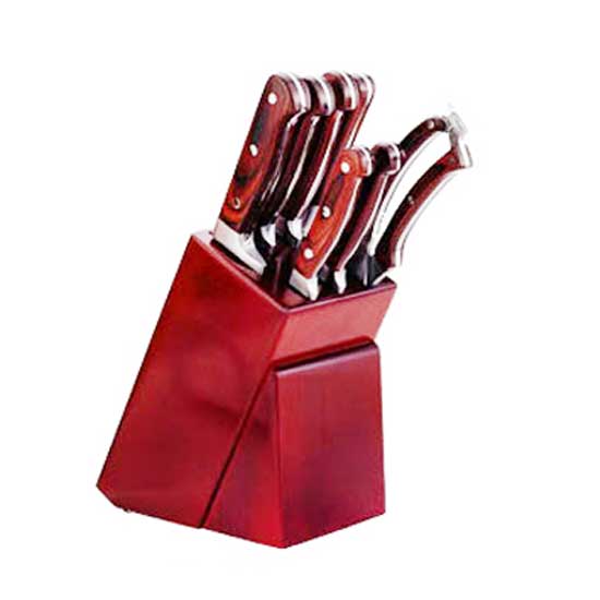 This is a 7-piece knife set for kitchen use. A knife holder is included for better organization. This displayed knife set is ideal for home use.