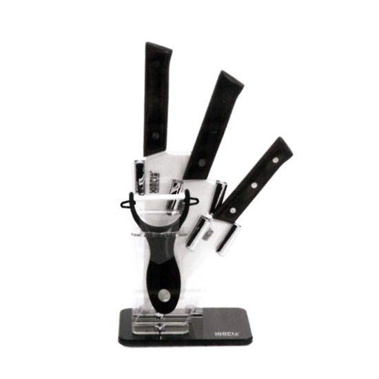 This knife set comes with 3 kitchen knives, a peeler and a knife stand. The knife blades are delicately sharpened to make cutting effortless. It is a must-have item for every household.