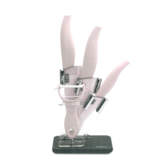 Featuring a white finish, the knife set includes 3 kitchen knives in different sizes, a peeler and a knife block. The sharp blade makes cutting much more effortless. The knife set is perfect for cutting meat, vegetables and fruits.