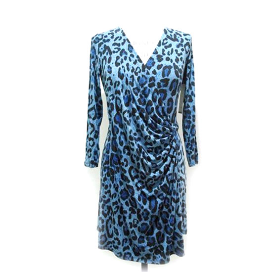 The knit dress is styled with allover leopard spots for a distinguished touch. It features a neat and presentable V-shape neckline. This whole piece is knitted with tender rayon spandex fabric.