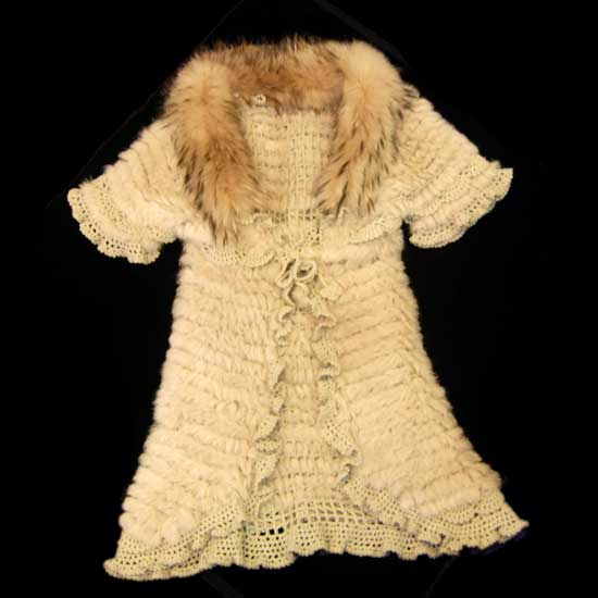 This knitted cardigan comes in with girlish and romantic details. With a collar made with raccoon fur, the cardigan offers you warmth and feed your vanity. The short-sleeved design makes it suitable to match winter dresses.