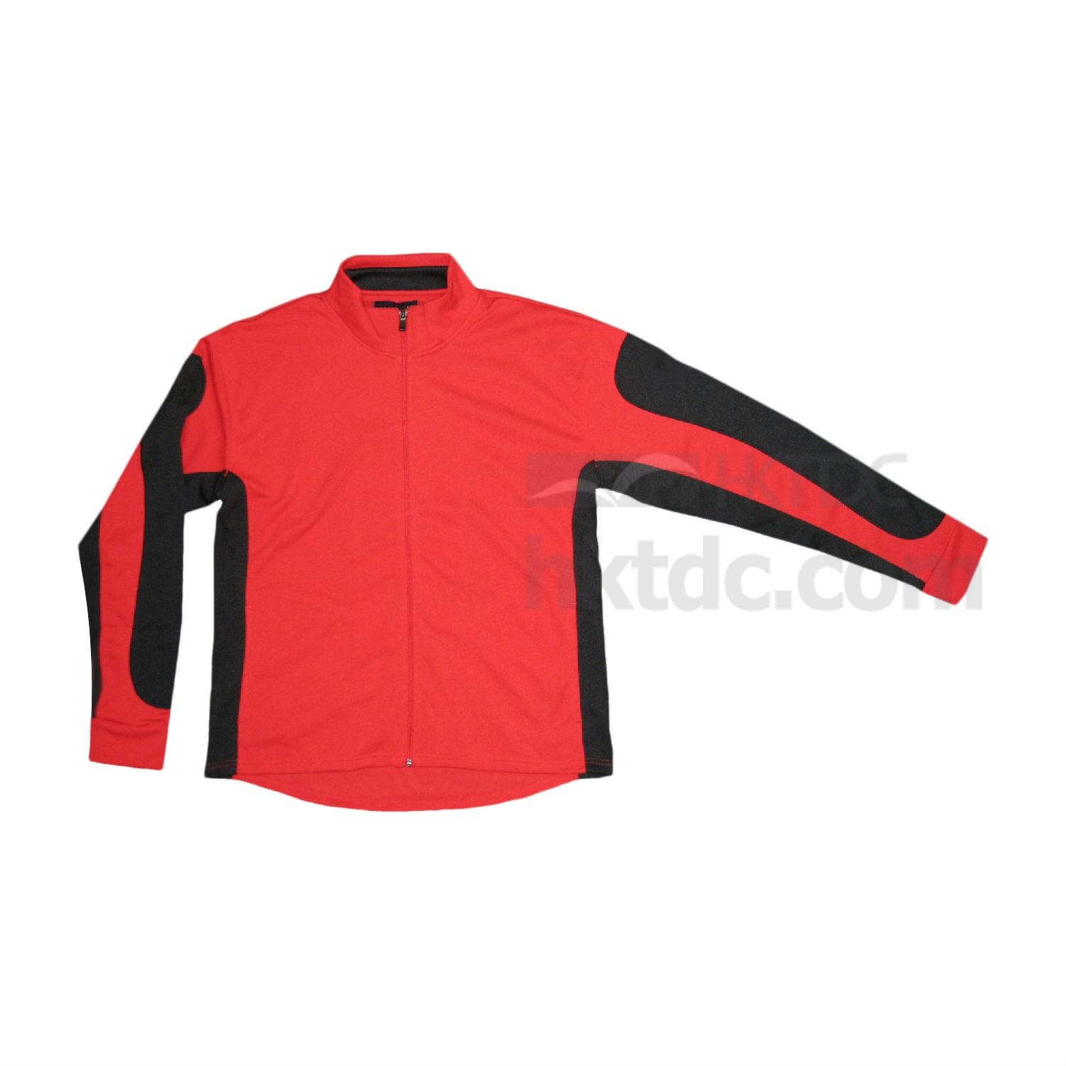 Featured here is a knitted polyester jacket with a breathable construction. It has long sleeves and side panels in contrast colors and has ventilation holes underarm. This polyester jacket offers a stylish and sporty look and is excellent for outdoor activities.