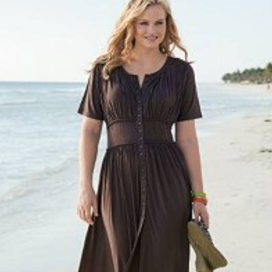 This ladies' dress features all-over pleated detailing and a full button-down front. The dress comes with a banded waistline to create a body-slimming silhouette. The lightweight and soft material provides absolute comfort for wearing in warm weather days.