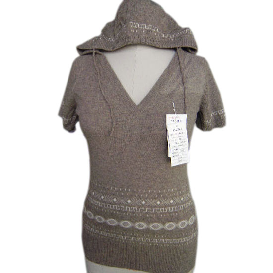 This females’ knitted sweater has a hood sturdily attached for a fashionable touch. The adorable pattern on the bottom is distinctive and helps catch people’s attention. This patterned knitted sweater has a V-shaped neckline.