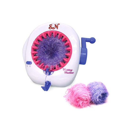 This set includes a knitting machine, safe sewing needles and a skein of thread. It allows you to knit your very own scarf, hat or even a sweater in no time. Turn the crank to swiftly knit your own clothes with this knitting machine.