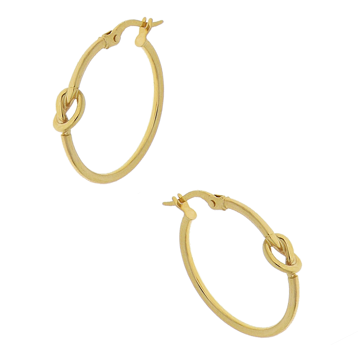 SILO is one among the biggest companies in the world specialized in the production of hollow and super light tube jewels. These earrings perform a knot design which is a forever classical theme in hoops.The highly polished finishing complete the look. Visit or contact us and you'll be surprised to discover our infinite range of hoop, bangles and earring made with hollow tube "canna vuota". Available also in gold filled / bonded.
