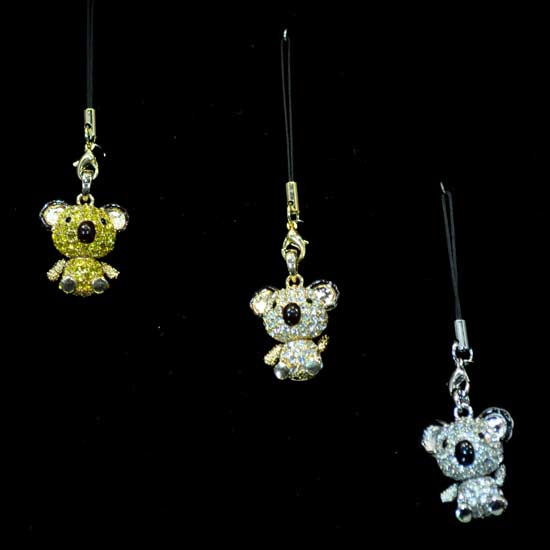 This koala key chain is made of top-quality zinc. The crystal beads embedded promise a glamorous appearance. This item is an excellent gift idea for animal lovers.