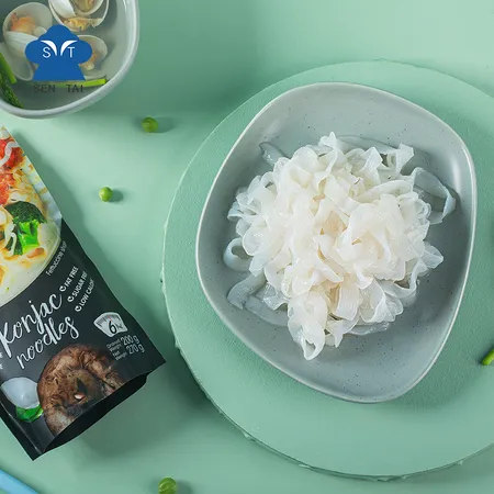 Konjac Fettuccine Noodles are made from natural soluble fiber – Konjac glucomannan (KGM) and water, and are a very low-carb and glycemic natural food.