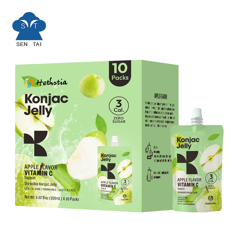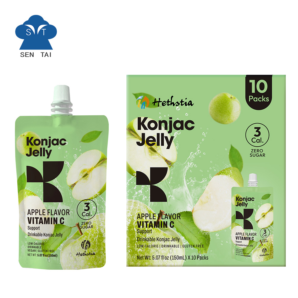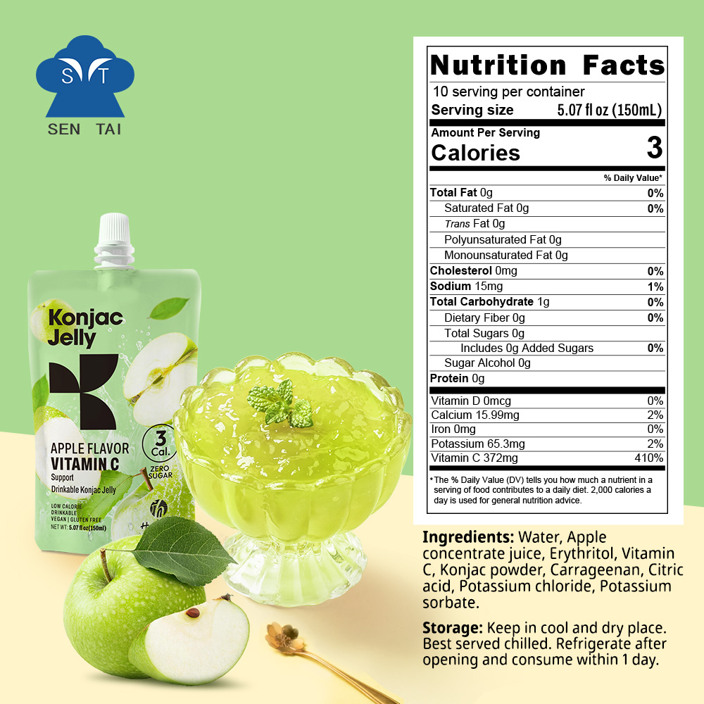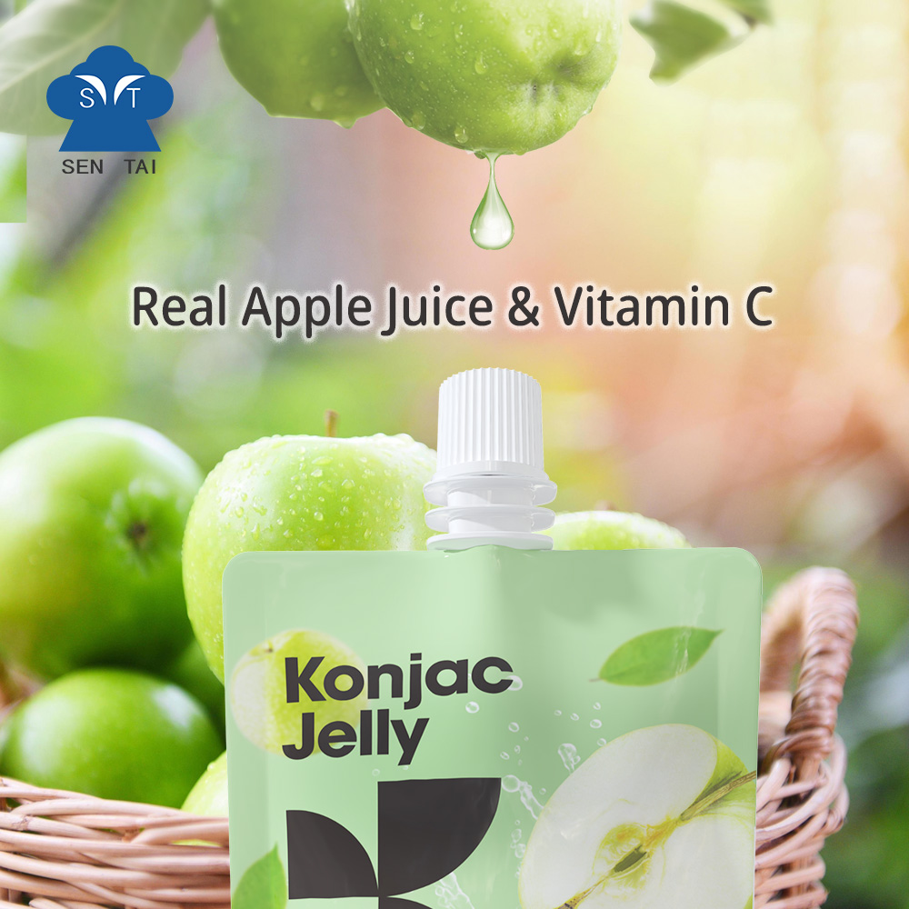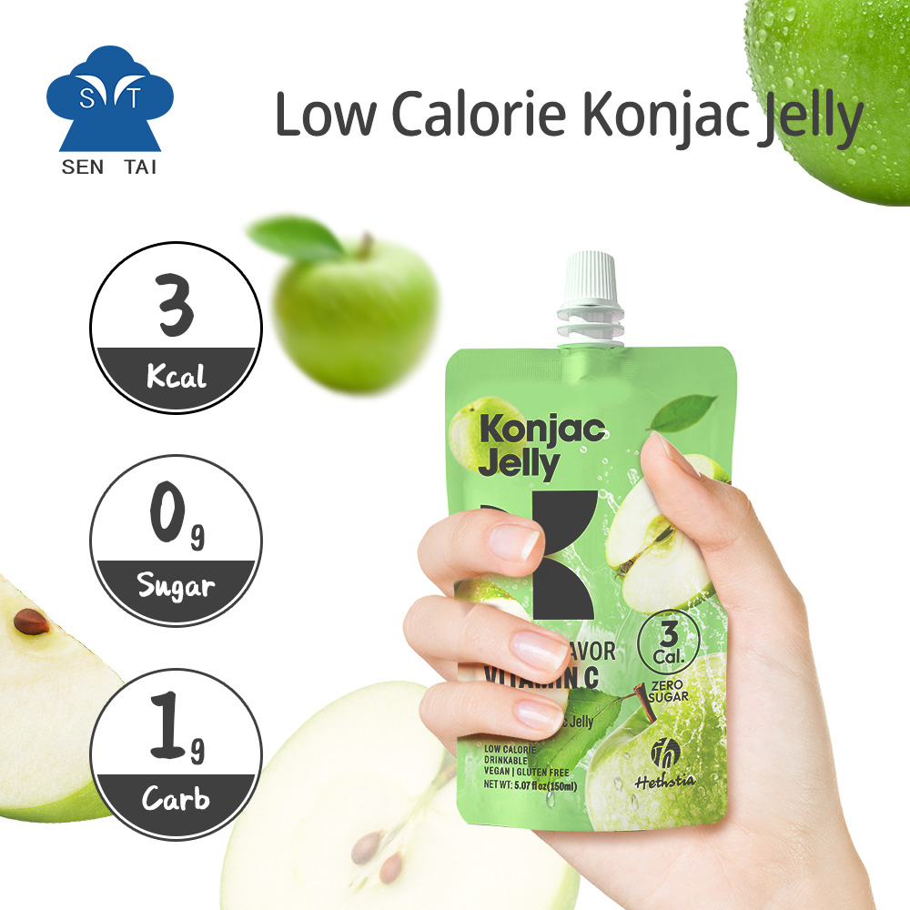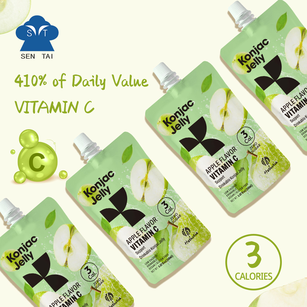A bag of konjac jelly apples a day keeps the doctor away. The raw material of Konjac jelly apple is konjac root powder, which contains glucomannan, an ingredient that has a strong ability to absorb water and will gradually expand. This helps keep you fuller for longer while being extremely low in calories.