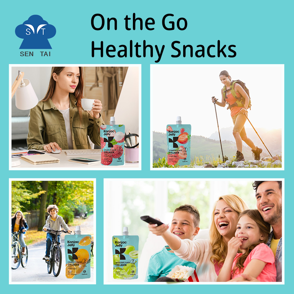 Our konnyaku powder jelly comes in various new flavors, including green grape, strawberry, apple, and passion fruit.