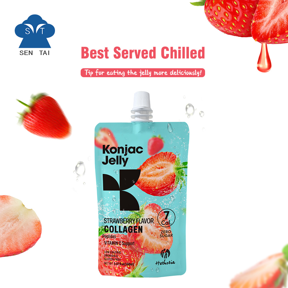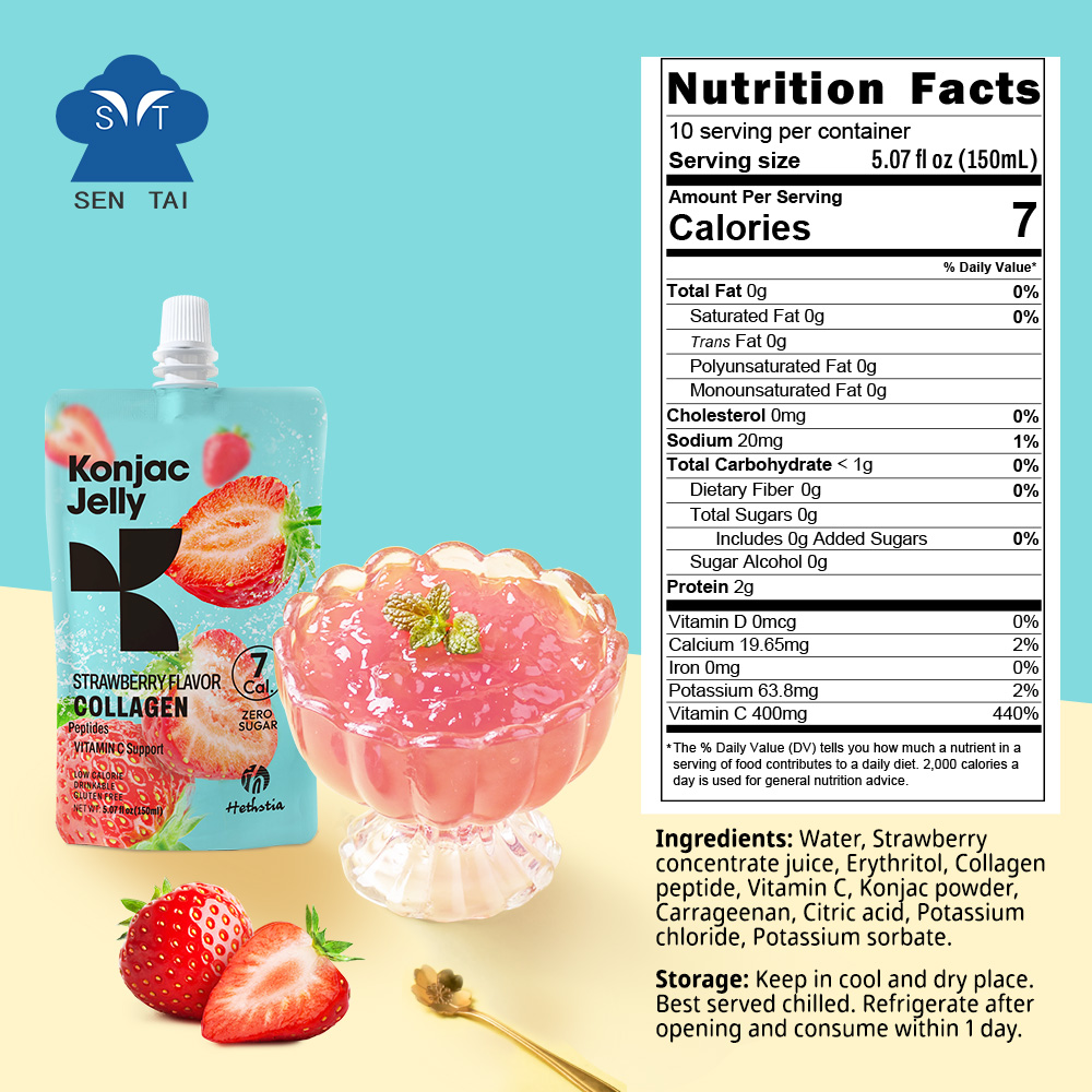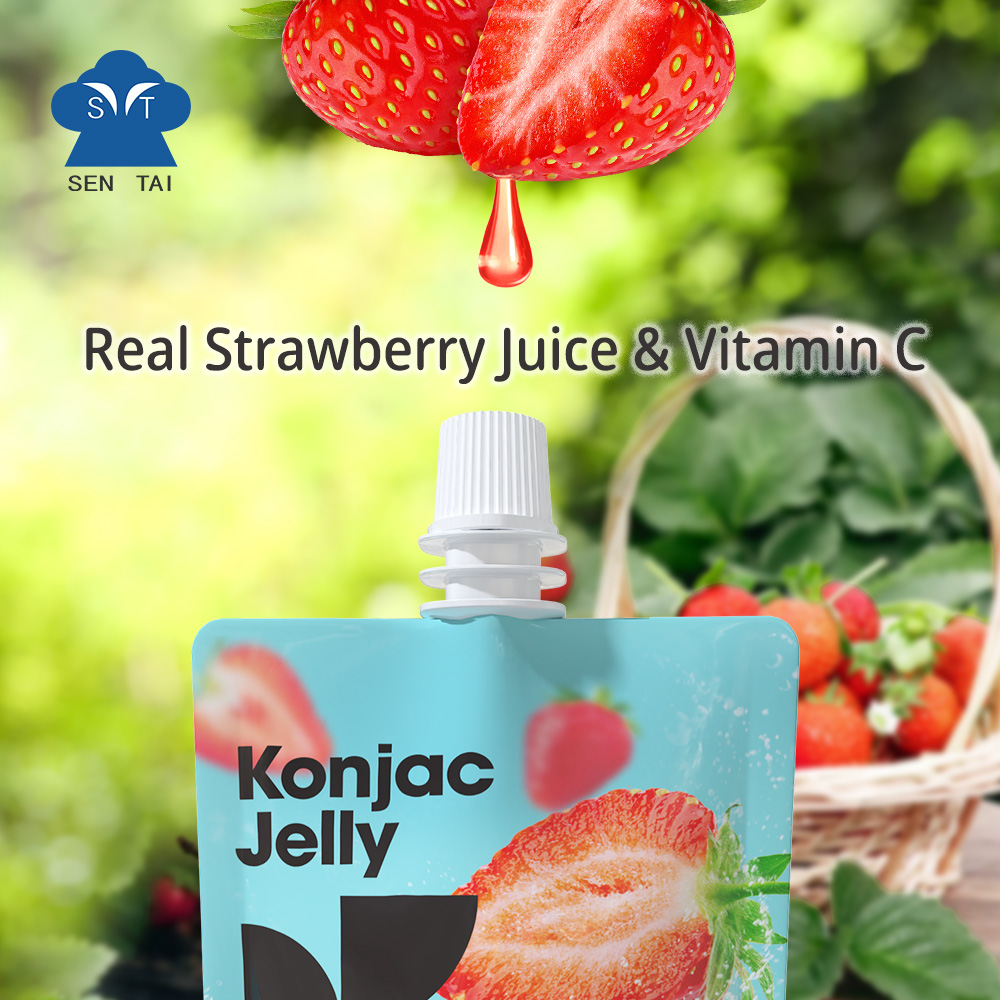 Sentaiyuan’s newest Konjac Powder Jelly, available in Strawberry, Apple, Green Grape, and Passion Fruit flavors, is perfect for hot summer days. This package contains 150 grams of strawberry-flavored konjac jelly—only 3 kcal per 100ml!