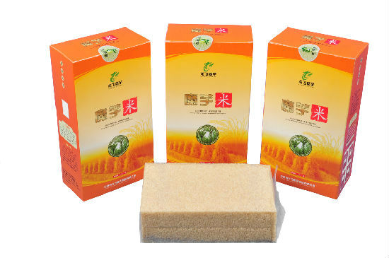 Highlighted here is konjac rice made from purified konjac powder. This specially processed rice has almost no calories but high in soluble fiber, making a popular diet food. Apart from the rectangular packaging box, this dry food is vacuum-packed to ensure long shelf life.