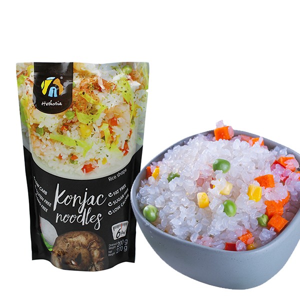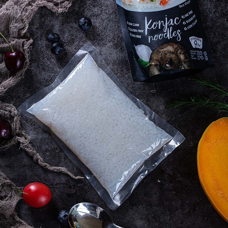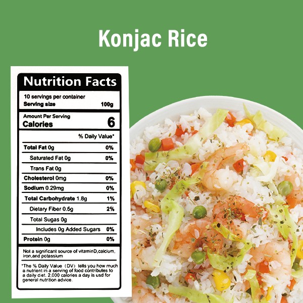 Konjac rice is made with konjac flour containing the water-soluble dietary fiber glucomannan. Studies have shown konjac glucomannan in the diet is beneficial to our health in many ways