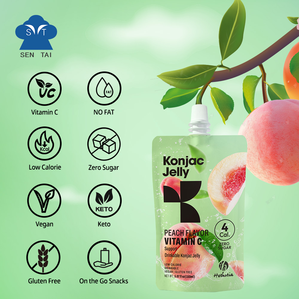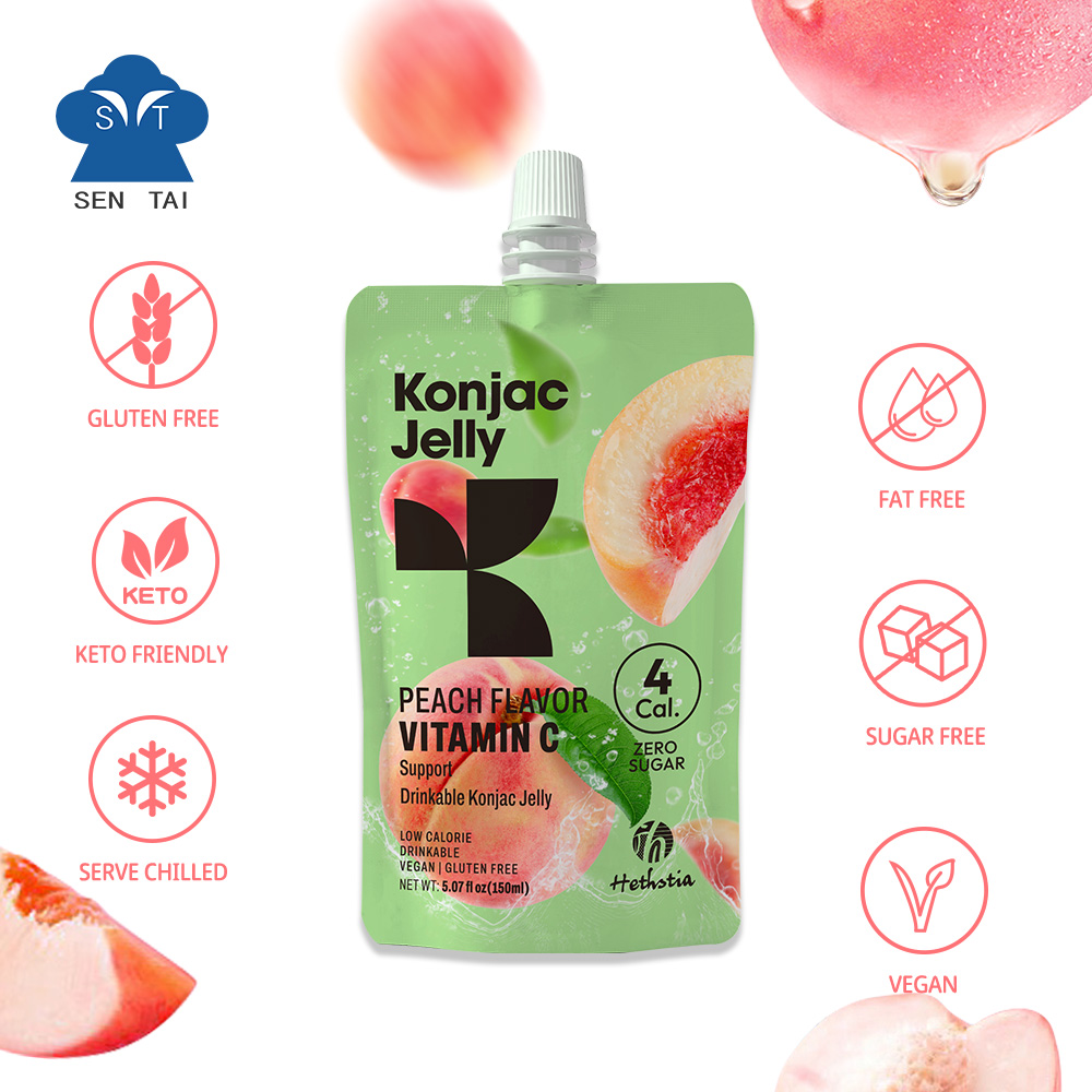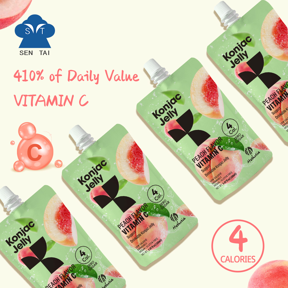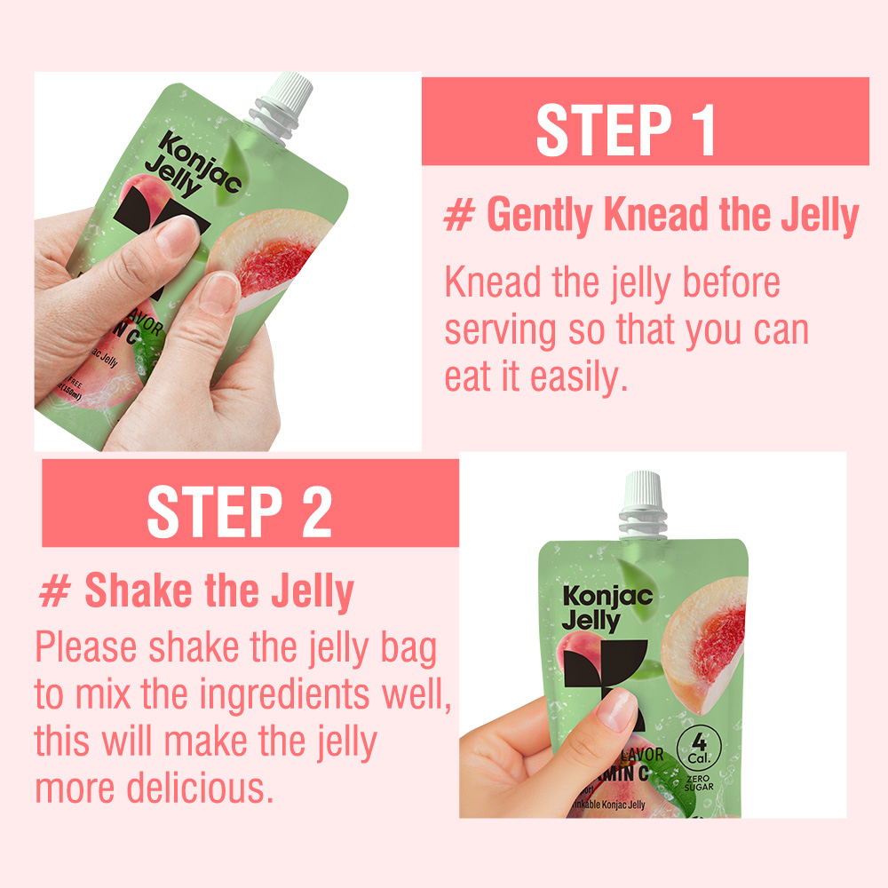 This Konjac jelly peach drinkable contains no sugar, fat, 0 carbs, and only 4 calories per serving. Conveniently portable, open the lid and serve anytime, anywhere. For the best flavor, place in the refrigerator for 1 hour before serving.