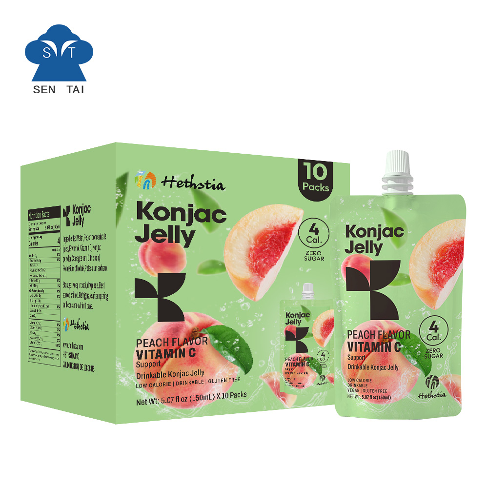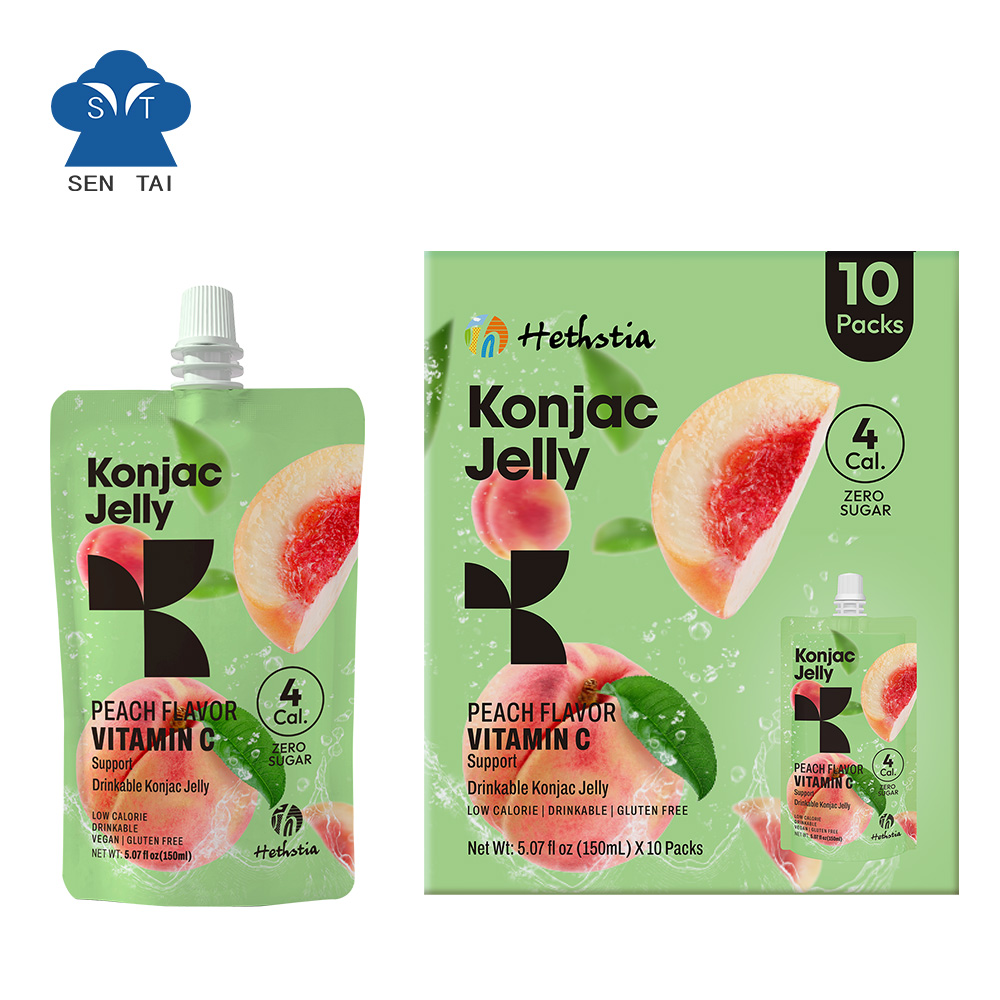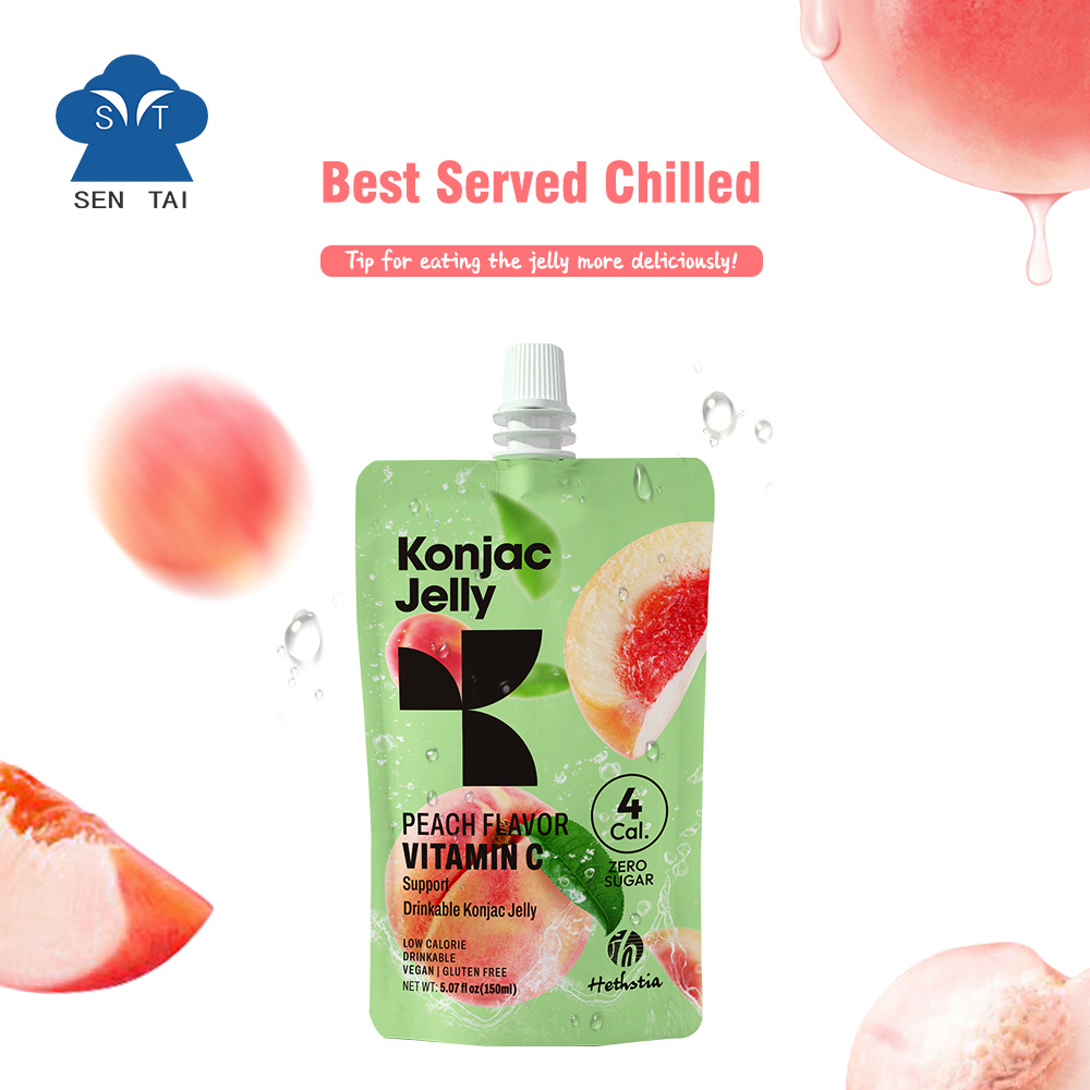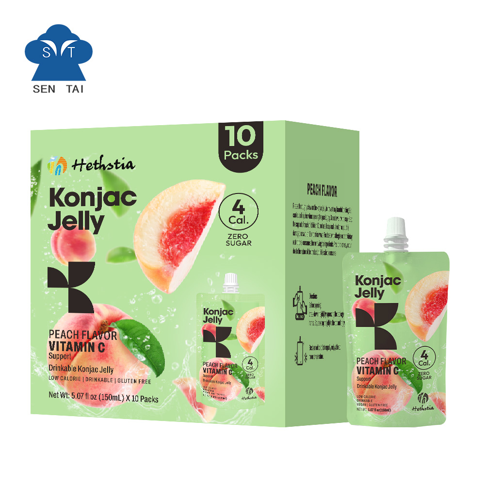 This Konjac jelly peach drinkable contains no sugar, fat, 0 carbs, and only 4 calories per serving. Conveniently portable, open the lid and serve anytime, anywhere. For the best flavor, place in the refrigerator for 1 hour before serving.