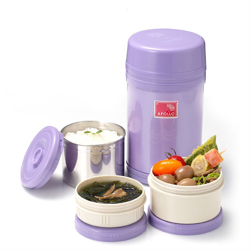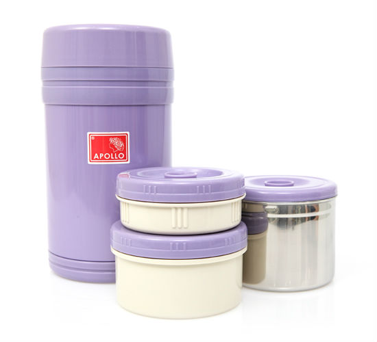 The unique APOLLO vacuum lunch kits technology has made SUPER QUALITY "Double Wall" vacuum insulated with getter tech and aluminize coating tech. It provide a great heat retention (8hours for hot )