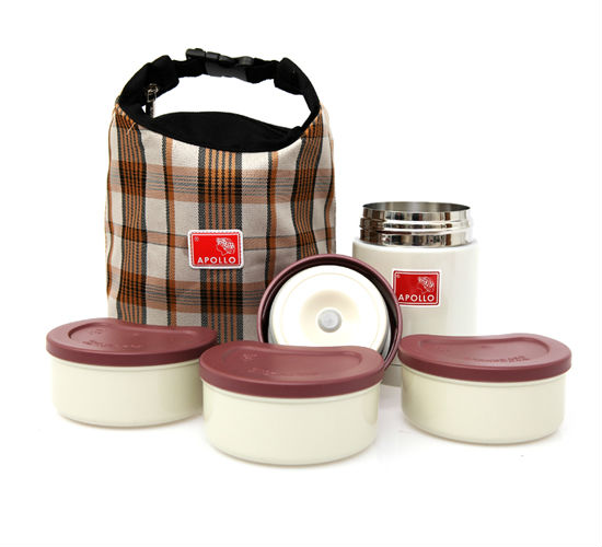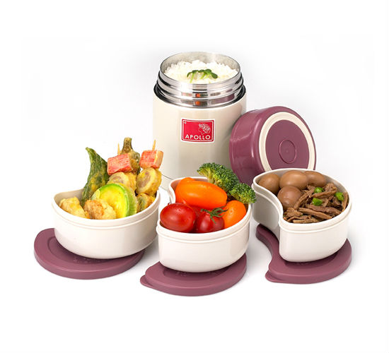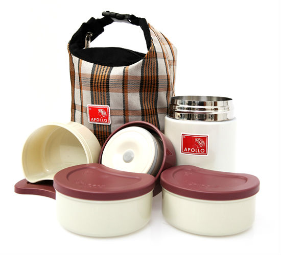 - Double walled stainless steel thermo lunch boxes that can keep food hot for hours.