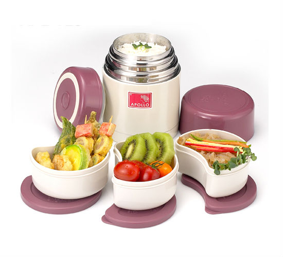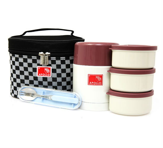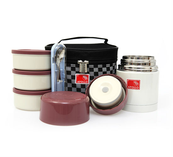 • Double walled stainless steel thermo lunch boxes that can keep food hot for hours.