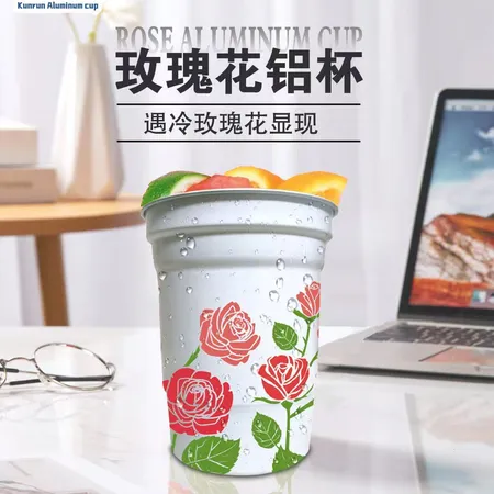 Pour ice water/cold drink , the glass will be in with the liquid Change color quickly after contact From shallow to deep at a glance