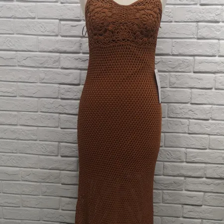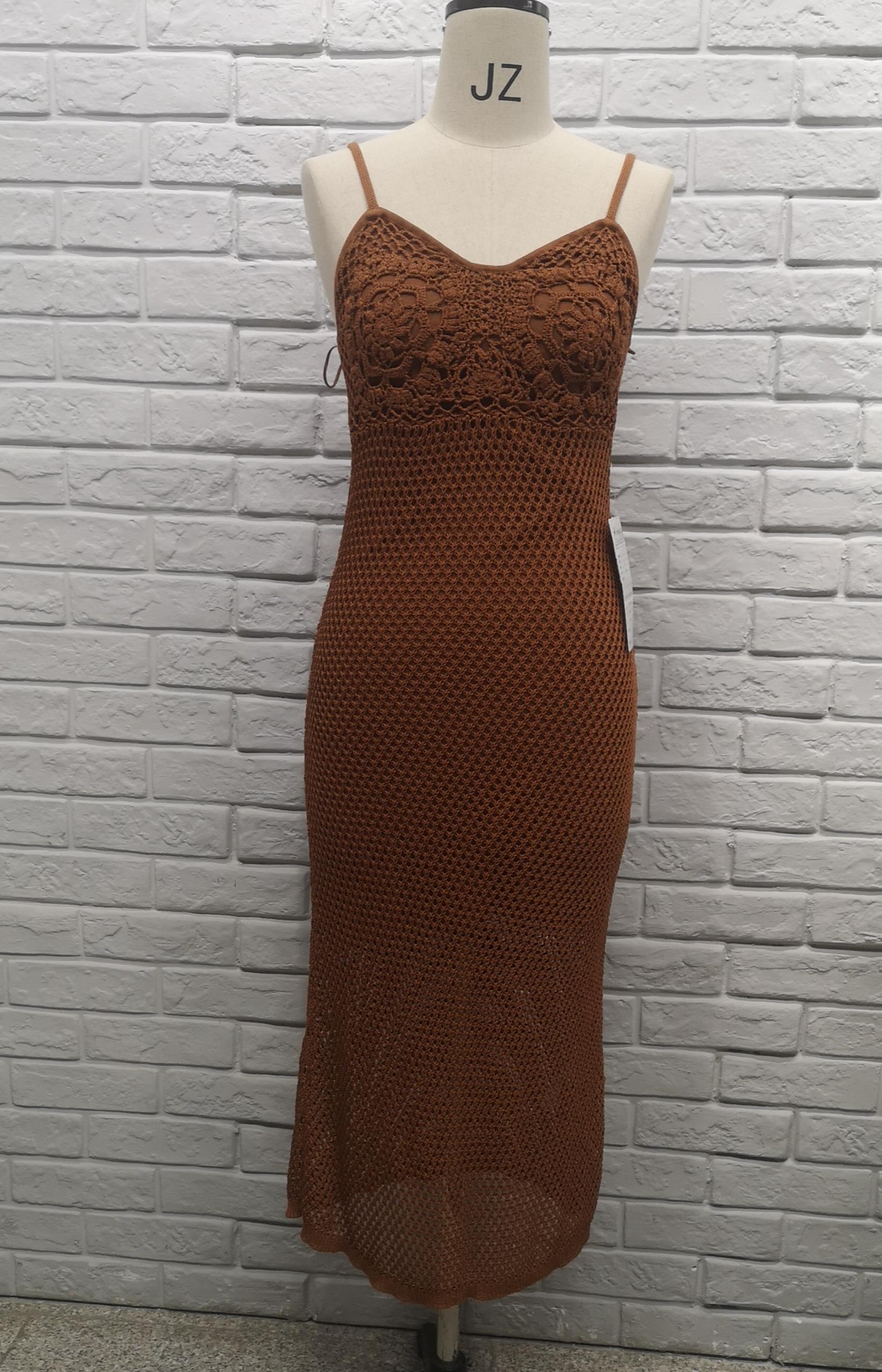 Ladies knitting dress with hand crochet flower