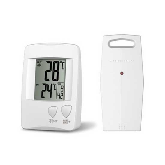 This chic LCD clock in white features a multifunctional design. It is capable of displaying the time, indoor and outdoor temperatures. The few button design allows easy operation for users.
