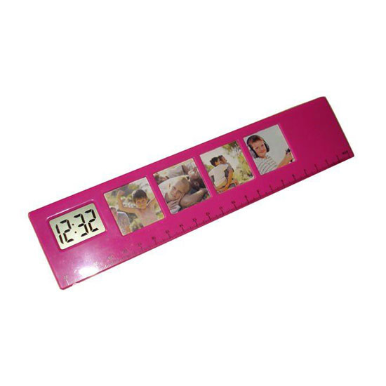 This rectangular-shaped LCD clock comes with a stylish design. It is designed with a photo frame, a ruler, a calendar and an alarm for added functionality. This multifunctional LCD clock boasts a robust housing for durability.