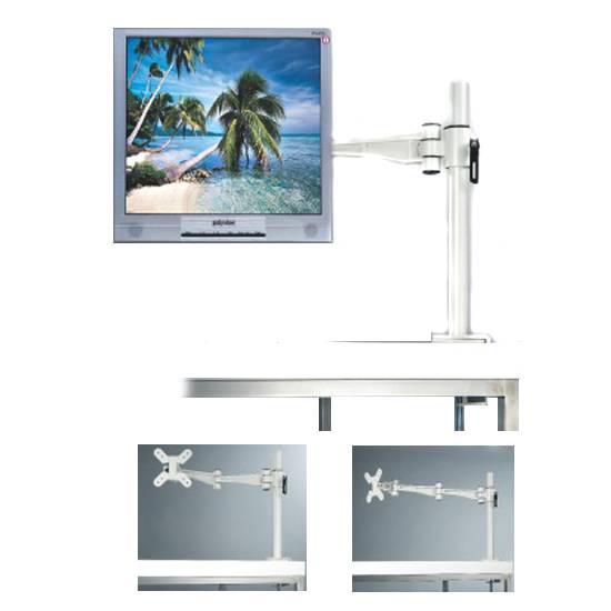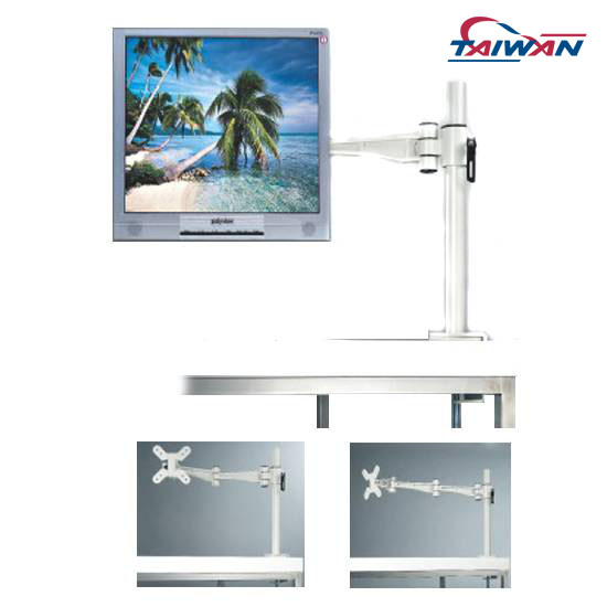 The LCD monitor holder helps creating an extra space on the desk by holding above the desk. It features adjustable horizontal angles from 0 degree to 30 degree. Furthermore, it is safe and secure with two sections folded arm for operation.