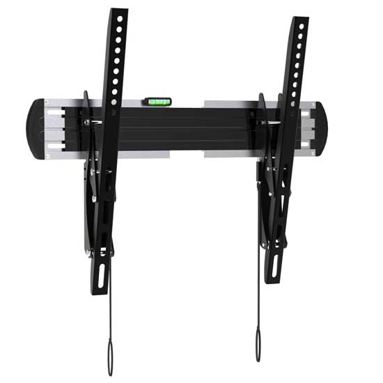 Showcased is a LCD TV bracket that comes with a bubble level for guided installation. It is constructed with strong metal for sturdy support. The LCD bracket is ideal for shops and stores. Maximize small spaces with this space-saving LCD TV bracket.