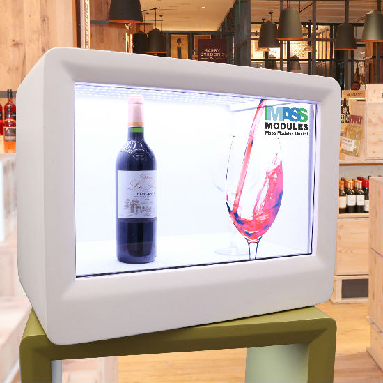 21.6" LCD Transparent Display Box supporting horizontal or vertical modes. Display Mode: single repeat, all loop display at set sequence