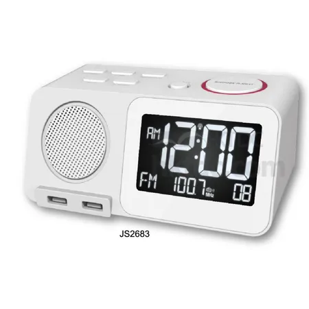 Functions: 12/24hr time, dural alarm, snooze, FM radio, Nap, backlight, two USB charging.
