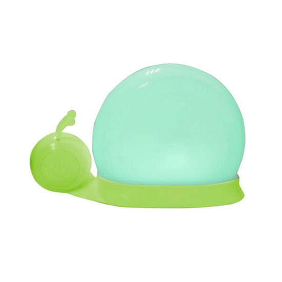 The LED baby night light features a snail with a green finish. The suction cup ensures that the night light is placed firmly on the table. You can touch the night light to switch it on and off for extra convenience.