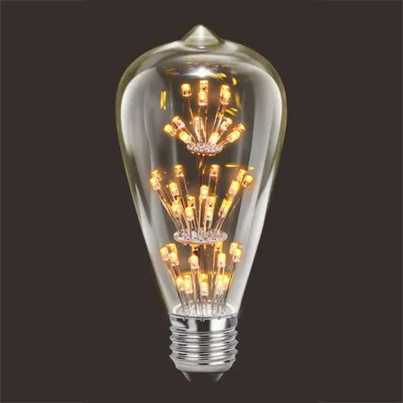 Displayed is an LED bulb that comes in a unique transparent design. Using ST64 LEDs, this light bulb is dimmable and offers a satisfactory illumination. This energy saving light bulb has a long lifespan of 20,000 hours.