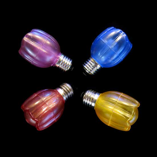 Displayed is an LED bulb that comes in a flower shape. With a screw cap, this bulb can be easily installed in various lighting fixtures. This energy saving bulb is ideal for outdoor decoration.