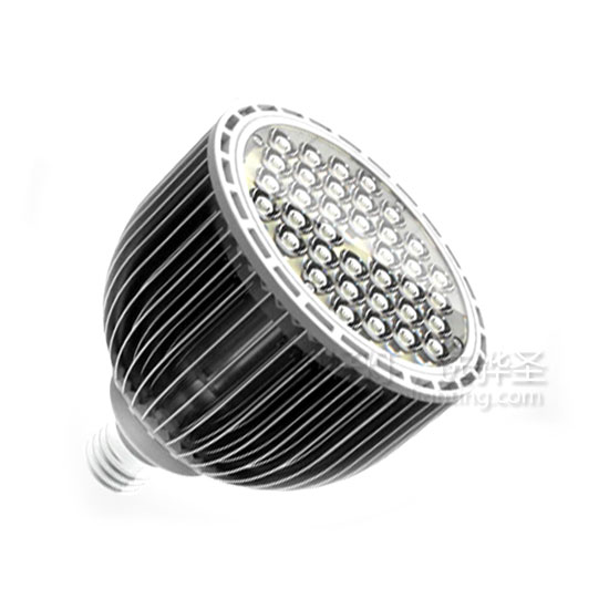 This 90W LED PAR64 light bulb features a durable housing in silver. The narrow fins are designed for good heat dissipation. The LED light source offers bright illumination with high stability.