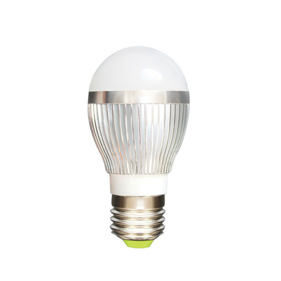This LED bulb is designed with a hemispherical lens and narrow fins for heat dissipation. The LED light source lowers energy costs and has a long lifespan. This energy saving bulb makes an economical replacement for traditional bulbs.