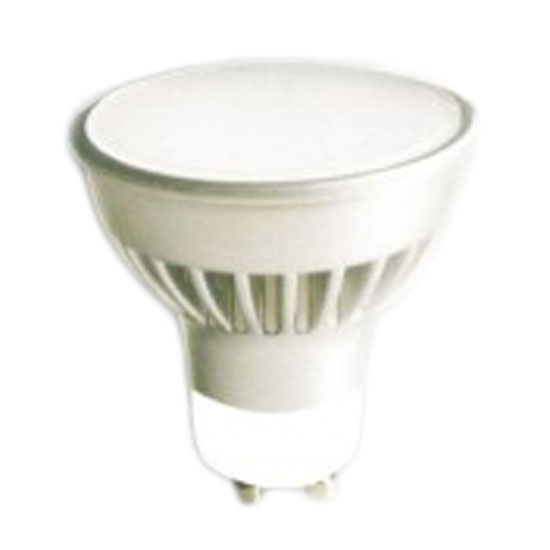 This is an LED bulb featuring a white finish. It gives off warm and pleasant illumination for a wide area. It is fitted with a GU10 base for easy installation.