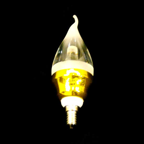 As shown is an LED candle bulb that boasts low level of energy consumption. It comes with dainty-shaped crystal which imitates flame. The bulb comes with various base types for wide application.