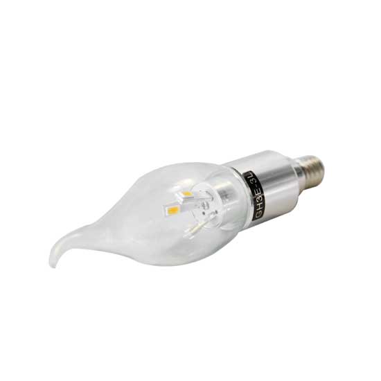 This LED candle bulb features a clear glass diffuser in a flame-shaped design. It emits super bright light with a wide beam angle. The elegant LED bulb is a great light source for chandeliers, wall lights and various other decorative lights.