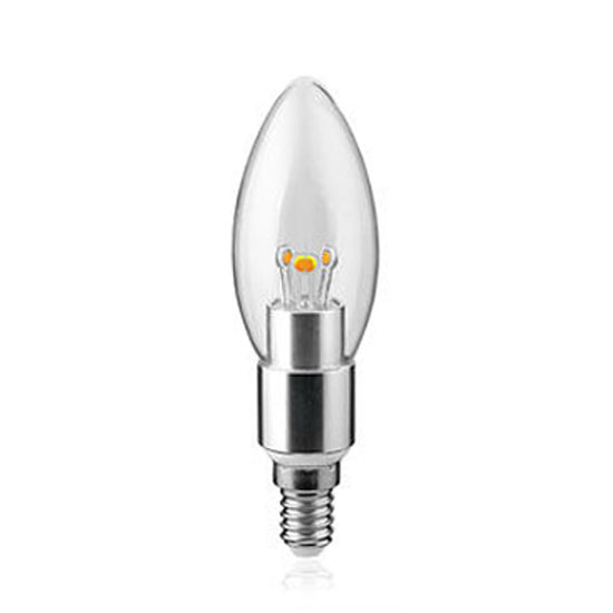 This is an LED candle bulb that is an energy saving light source for chandeliers. It features a cone-shaped lens with a sturdy screw base. The LED light source lowers energy costs and has a long lifespan.