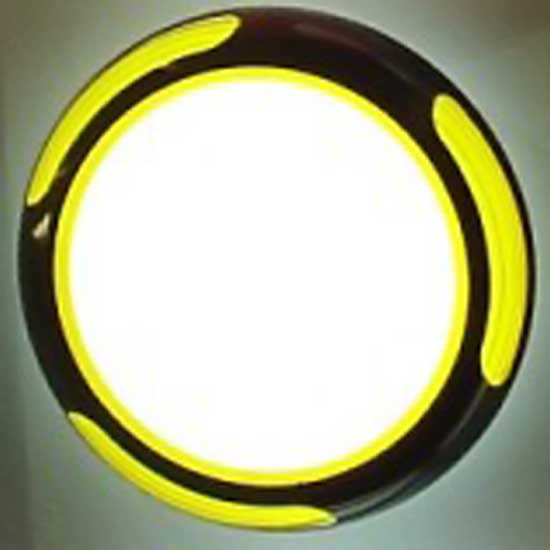 This is an LED ceiling lamp in a round shape with a unique and trendy housing in yellow and black. It uses LEDs as the light source to deliver high brightness and lower energy costs. This stylish ceiling lamp makes an economical light solution for various locations.
