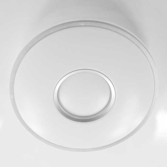 This LED ceiling light features a round white diffuser accented with aluminum rings. The ceiling light delivers bright and uniform light with a wide beam angle. The elegant design makes it easy to blend into any modern interior decor.