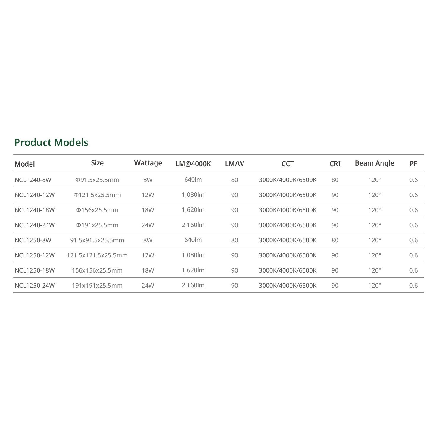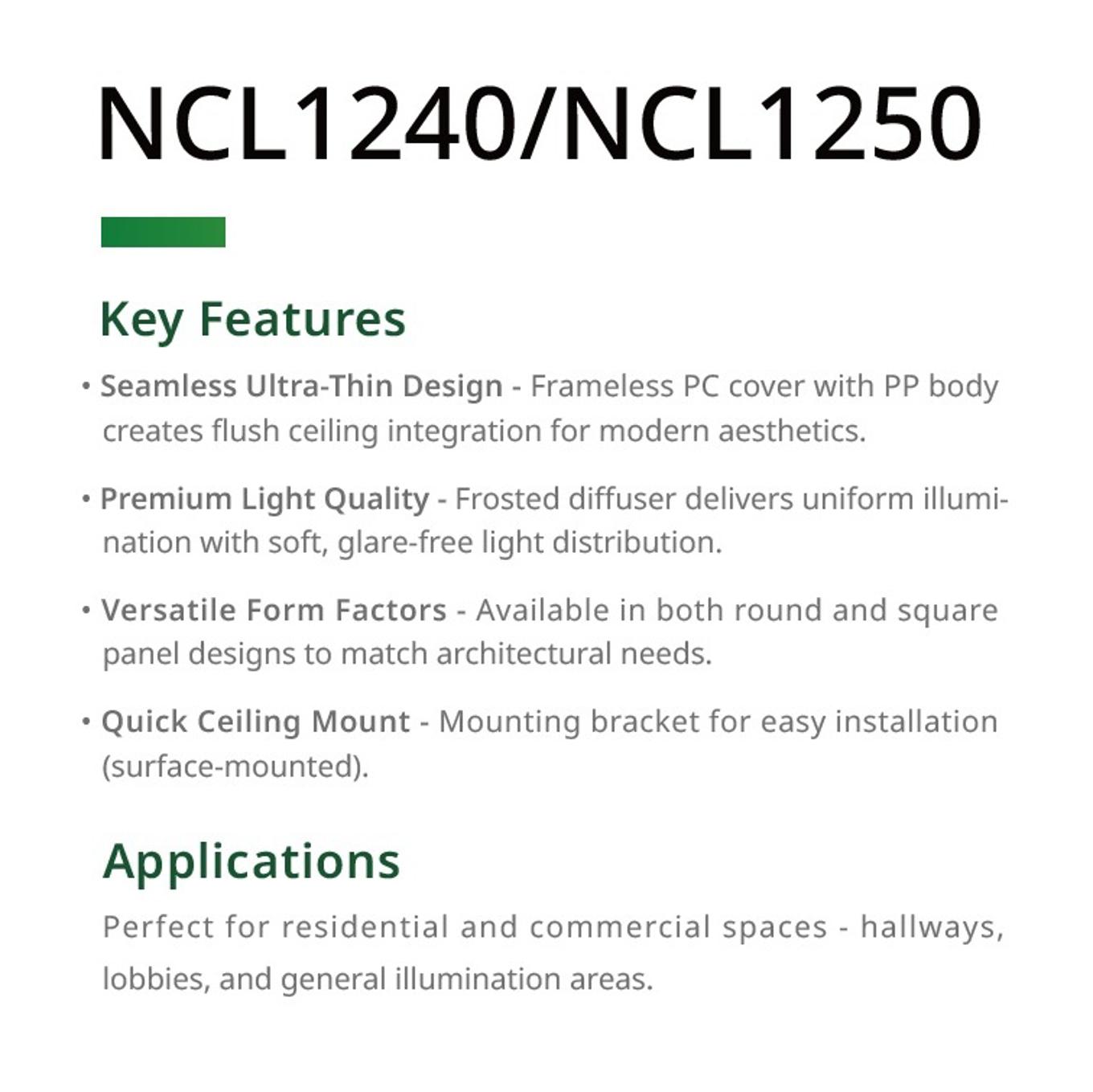 LED Ceiling Light, Ultra Thin, Round / Square, Easy installation, CRI 90, CE, NVC, NCL1240 / NCL1250
