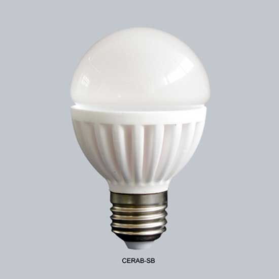 This is an LED bulb with a semi-spherical lens and a screw base. Its case is made of high-quality ceramic and tempered glass for a durable structure. The refined bulb makes an economical replacement for traditional light bulbs.